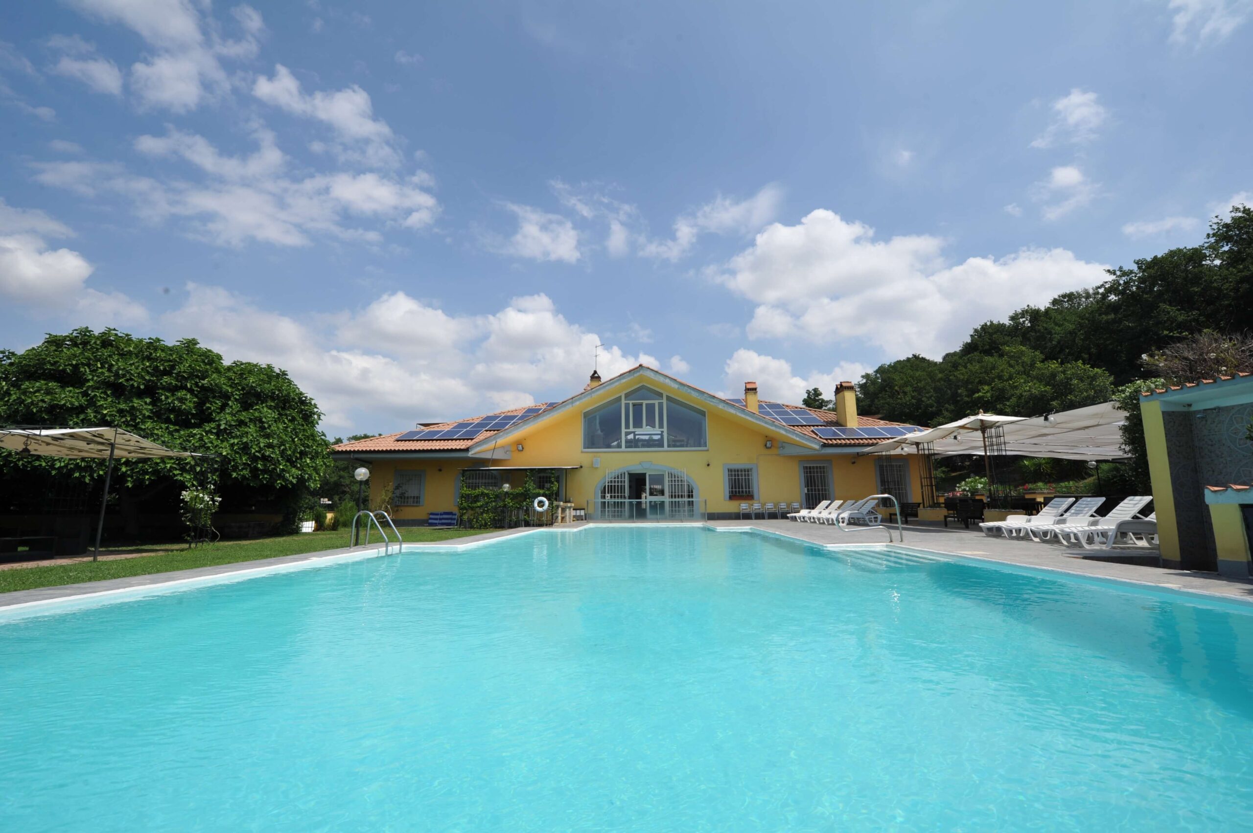 Eccoti al Casale delle Ginestre, l’agriturismo immerso nel verde vicino all’aeroporto di Fiumicino, a Tragliatella (Roma). Le camere e il ristorante della struttura sono a completa disposizione di chi intende partire senza stress o di chi torna da un lungo viaggio in aereo: la posizione del Casale delle Ginestre, infatti, lo rende il luogo ideale per chi ama viaggiare ma anche concedersi una piacevole pausa in mezzo alla natura, restando comunque vicino all’aeroporto e a un’ora di distanza da Roma. La grande area naturale che circonda la struttura, accoglie gli ospiti in un abbraccio caldo, confortevole, riservato e familiare: si trova proprio qui al Casale l’oasi verde della zona, un vero e proprio angolo di pace e di tranquillità, dotato di una grande piscina, di una fattoria e di un ristorante che prepara e serve gustosi piatti tipici a km zero. Chi si ferma per un pranzo, una cena, un ricevimento o anche solo per una rilassante fuga dal caos cittadino, ricorda con piacere gli attimi trascorsi in questo luogo magico in cui si coltivano ortaggi, si allevano tacchini, capre, oche, galline ma soprattutto si mangia cibo sano e genuino, godendo a pieno dell’atmosfera ideale per un breve soggiorno di lavoro o di piacere, da soli, in coppia, con gli amici o con la propria famiglia. La possibilità di visitare la fattoria didattica (prossima apertura) del Casale delle Ginestre, rappresenta inoltre una prima esperienza da non perdere, per grandi e piccini, da considerare insieme alle altre possibili attività a cui dedicarsi nei dintorni, perché conoscere un territorio significa prima di tutto viverlo. In questo senso il Casale delle Ginestre rappresenta una vera e propria full immersion nella dimensione naturale, familiare e accogliente, tipica dell’Agro romano.